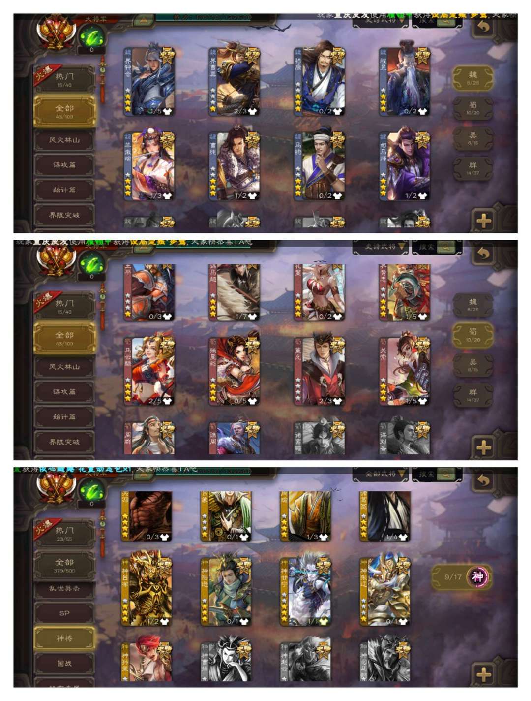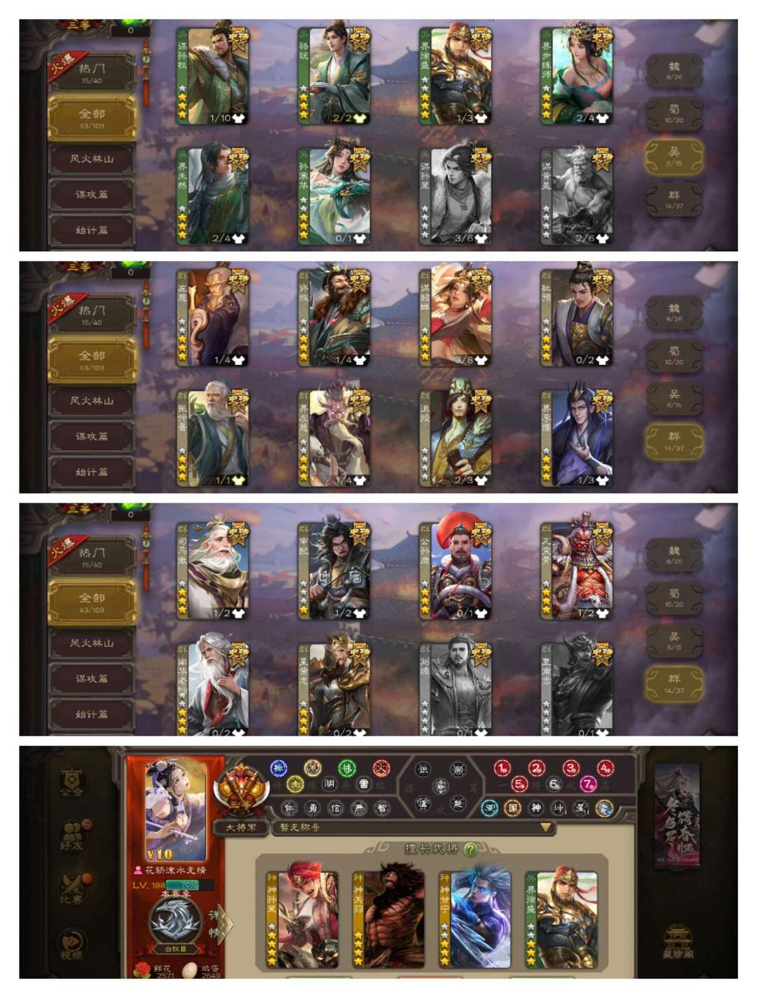 限制: 撤单率<19%才可租用此帐号装备描述:官方三等大将军,无卡,VIP10! 43史诗武将,动谋貂蝉动羊徽瑜动神吕布,金神甘宁金司马师,孙寒华神孙策谋孙权杜预马钧张仲景南华老仙星黄忠界徐盛界钟会界李儒周群神陆逊等! 27动皮59金皮155国战皮肤!