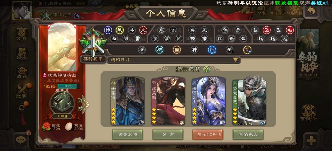 限制: 租号1次及以上 | 撤单率<15%才可租用此帐号装备描述:【有卡】双形态十常侍回廊石头人势太史慈动清河公主动陆郁生动谋关羽动司马昭动留赞大宝界左慈