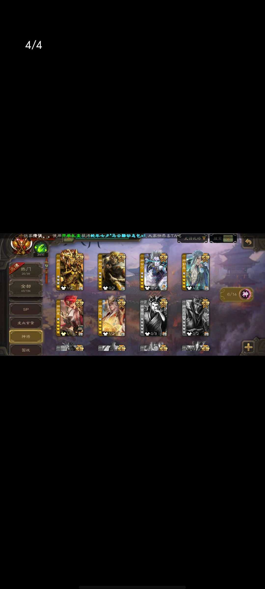 装备描述:【有卡三卡】动态刘焉双形态界钟会✘动态神荀彧★动态神郭嘉♛动态神孙策♛动谋关羽♛谋黄忠文鸯界沮授十常侍 魏:界钟会 文鸯 戏志才 蜀:谋黄忠 谋关羽 吴:谋孙策 留赞 界徐盛 群:界沮授 动态刘焉 十常侍 裴秀 神:动态神荀彧 动态神郭嘉 神甘宁 动态神孙策