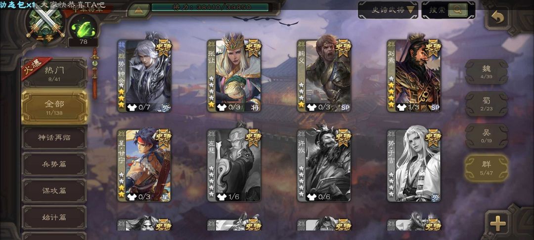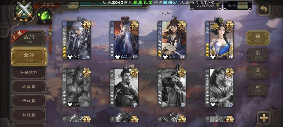 稀有军八炸鱼中军/势终会/崔芙/动刘焉/极略神司马懿/星甘宁/戏志才