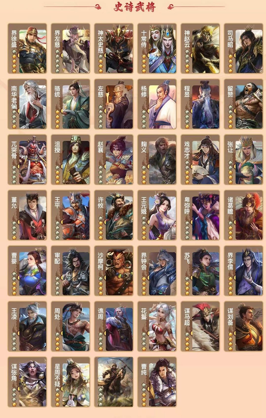 装备描述:界徐盛,界左慈,友徐庶,神太史慈,十常侍,神赵云,司马昭,南华老仙,骆统,左慈,杨修,程昱,留赞,兀突骨,沮授,赵襄,麹义,戏志才,张让,董允,王平,许攸,王元姬,卑弥呼,诸葛瞻,曹婴,审配,沙摩柯,界钟会,苏飞,界李儒,王凌,周处,谯周,花鬘,谋马超,谋刘备,谋张角,星周不疑,星董卓,曹纯,SP司马昭,势黄祖 动甄姬 动邓艾 动谋甄姬 动曹丕 动界曹丕 动界邓艾 动钟会 动钟繇 动界钟会 动曹昂 动SP蔡文姬 动曹婴 动司马昭 动星周不疑 动诸葛亮 动卧龙诸葛 动界诸葛亮 动界卧龙诸葛 动关银屏 动孙权 动陆逊 动吕蒙 动周瑜 动小乔 动孙策 动谋周瑜 动谋小乔 动谋吕蒙 动骆统 动周处 动界吕蒙 动界周瑜 动界陆逊 动界孙权 动界小乔 动徐盛 动大宝 动界徐盛 动留赞 动左慈 动界左慈 动李儒 动界李儒 动鞠义 动司马昭 动十常侍 至臻十常侍 动星徐晃 SP关羽,SP蔡文姬,乐进,曹昂,诸葛诞,朱灵,文聘,SP姜维,张春华,钟会,曹冲,郭淮,满宠,界王异,界曹操,界司马懿,界夏侯惇,界张辽,界许褚,界郭嘉,李典,曹真,韩浩史涣,陈群,曹叡,曹休,钟