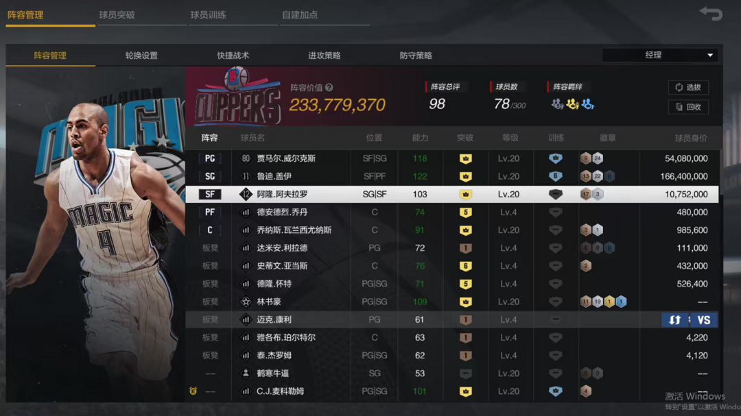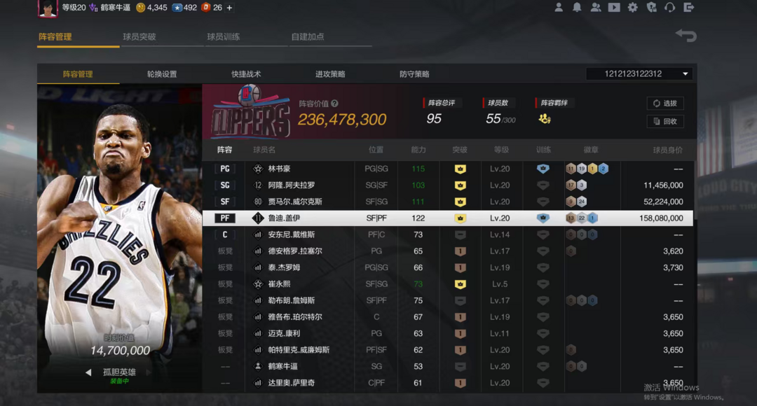 装备描述:X10孤单勇士鲁迪盖伊顶级二号位+X10顶级威尔克斯+X9阿弗拉罗+满图收藏林书豪