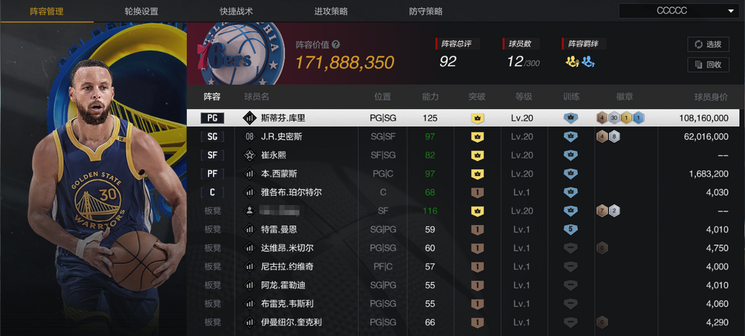 角色名:36.5 库里阵容
