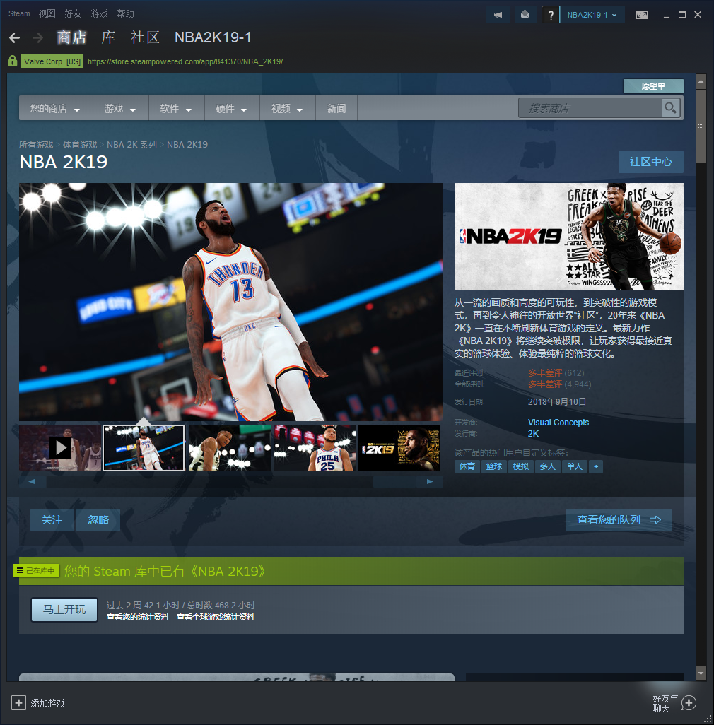 装备描述:NBA2K 19【NBA2K19】美国篮球2019-预购版!抢先体验游戏!