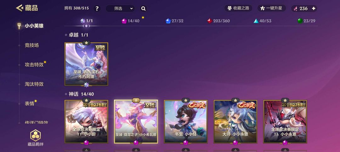 不朽阿狸,新增T1永恩蔚,至臻龙女,金紫毛亚索,大师永恩,墨影永恩,一卓越两至臻十三神话