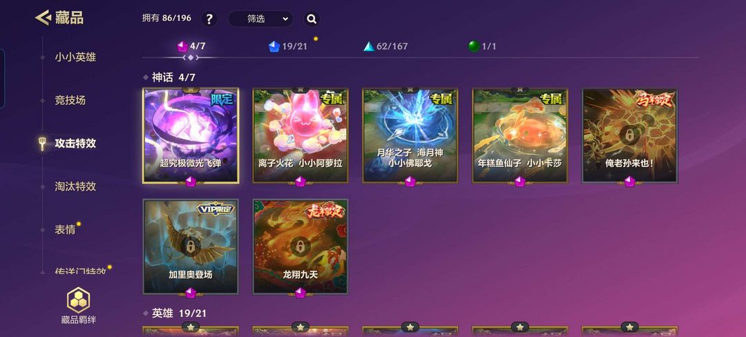 装备描述:3个神话小小英雄,66个消灭特效,八个竞技场