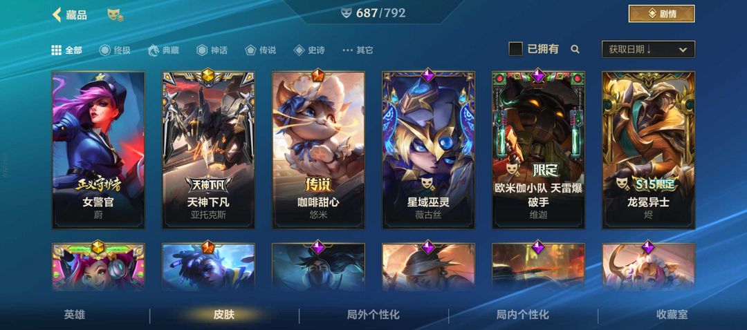 687皮肤,收藏分13.2w各种限定都有,“别逃跑了信誉分都没了”那种租完撤单继续玩的,别来