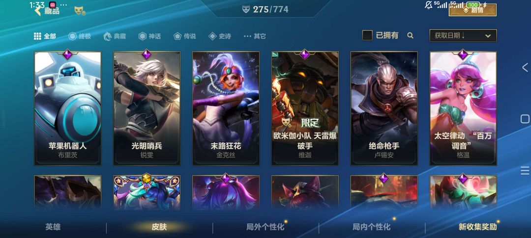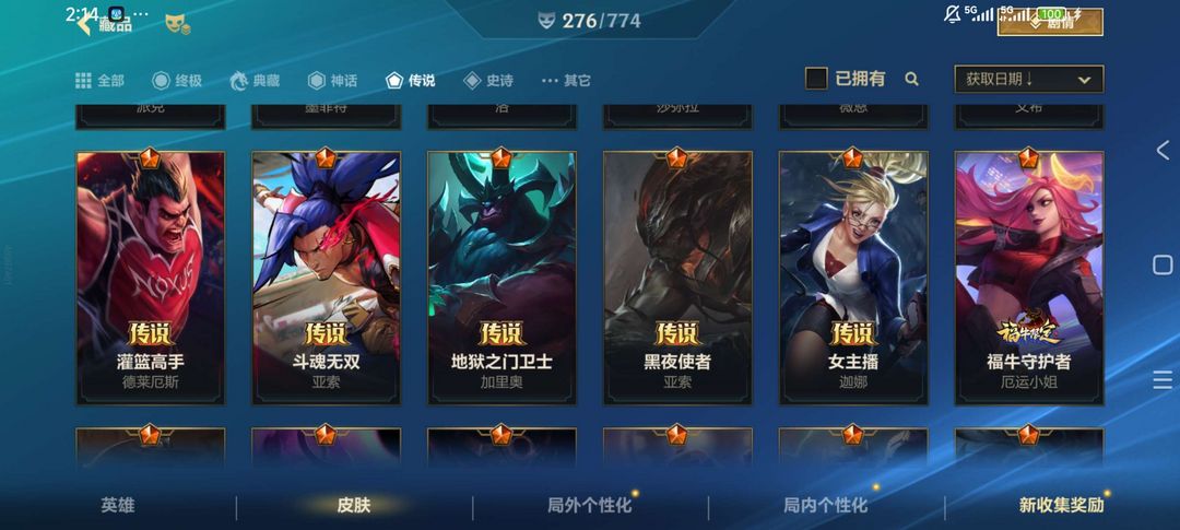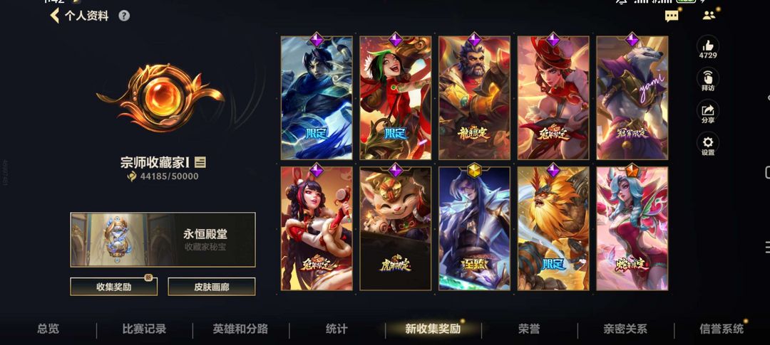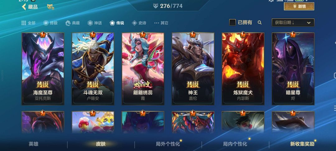 可排位 至臻心之钢 19传说 33限定 多史诗,基本所有英雄有个皮肤 禁言拉黑