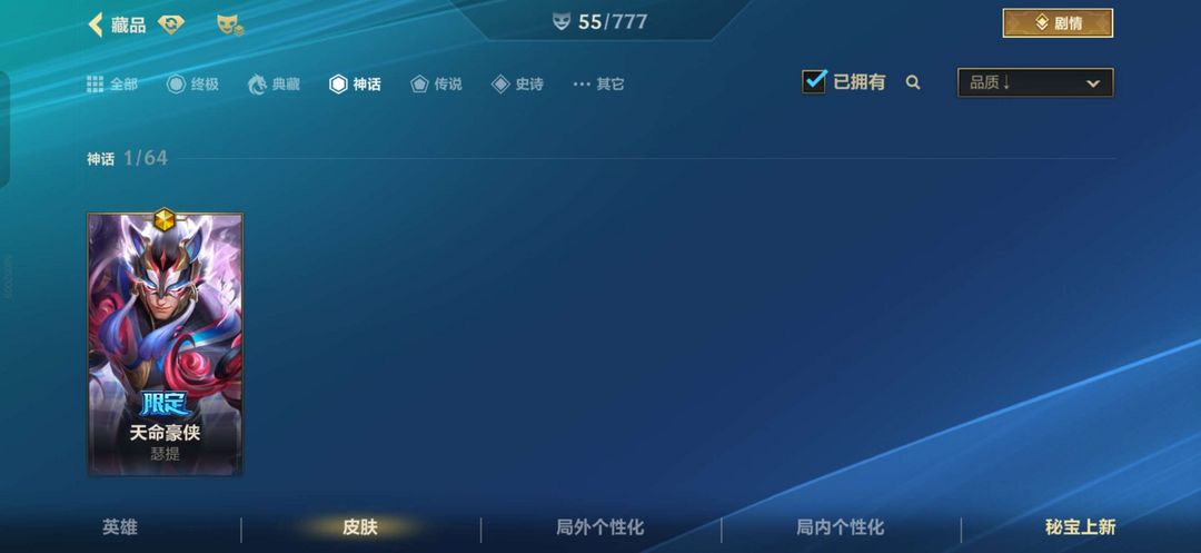 一个神话天命豪侠万豪,六传说,55个史诗皮肤