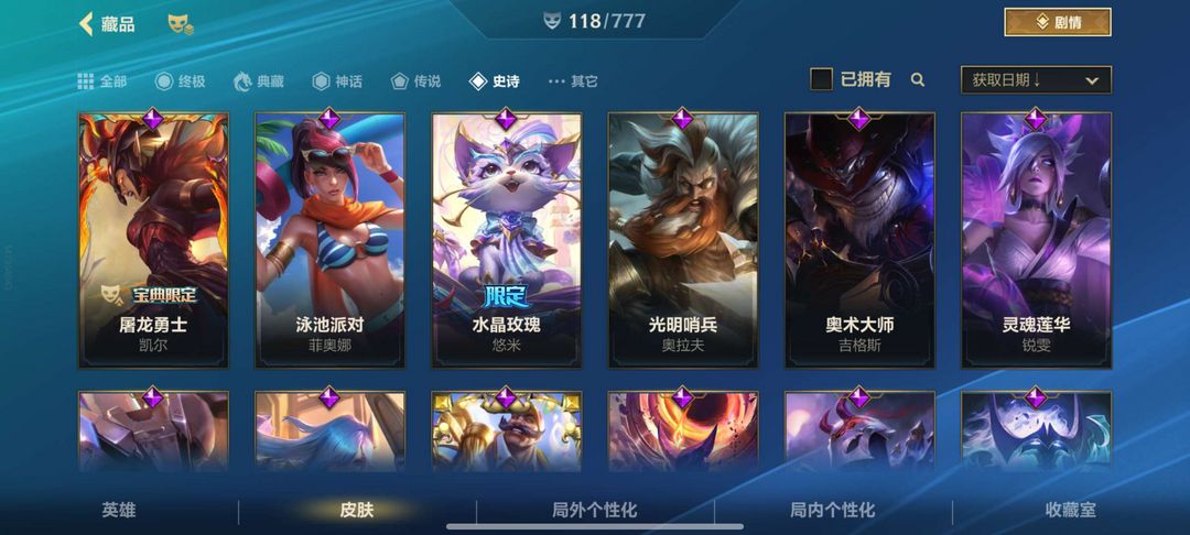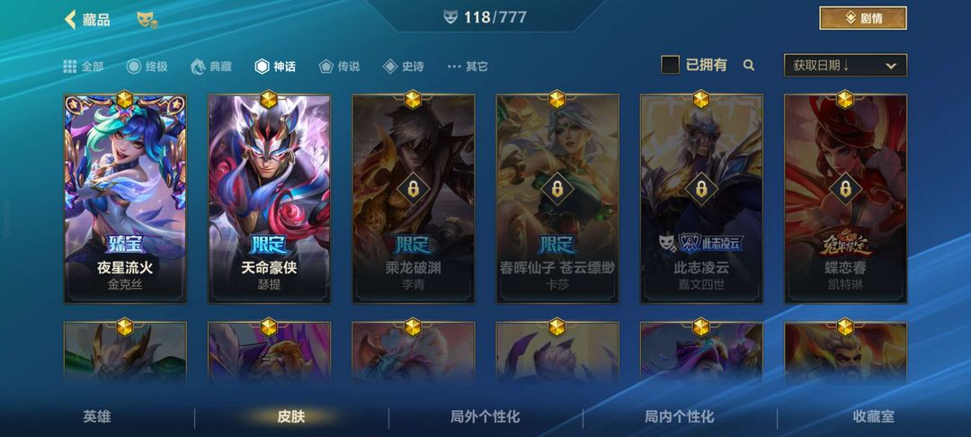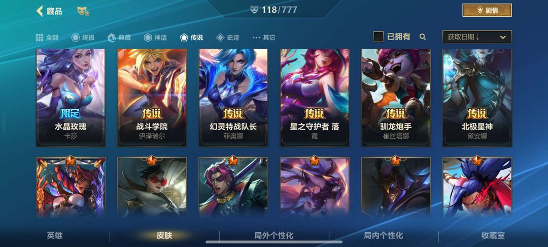 118皮肤,基本上全英雄,缺什么英雄可以买