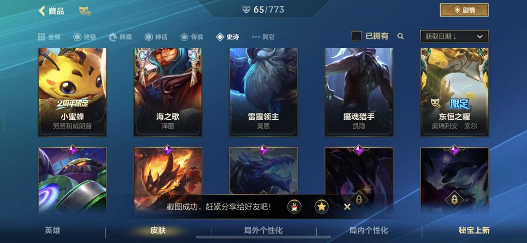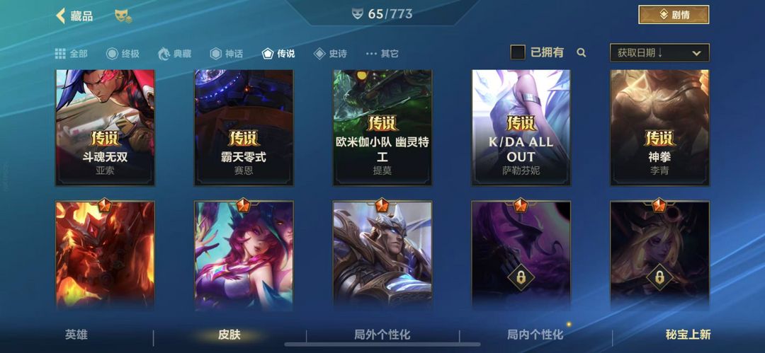 装备描述:66皮肤8传说27史诗可排位