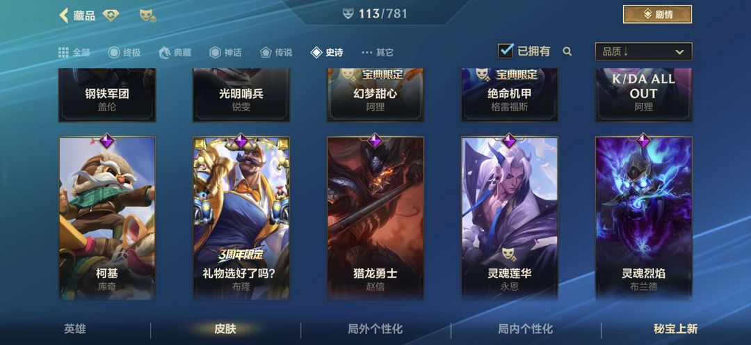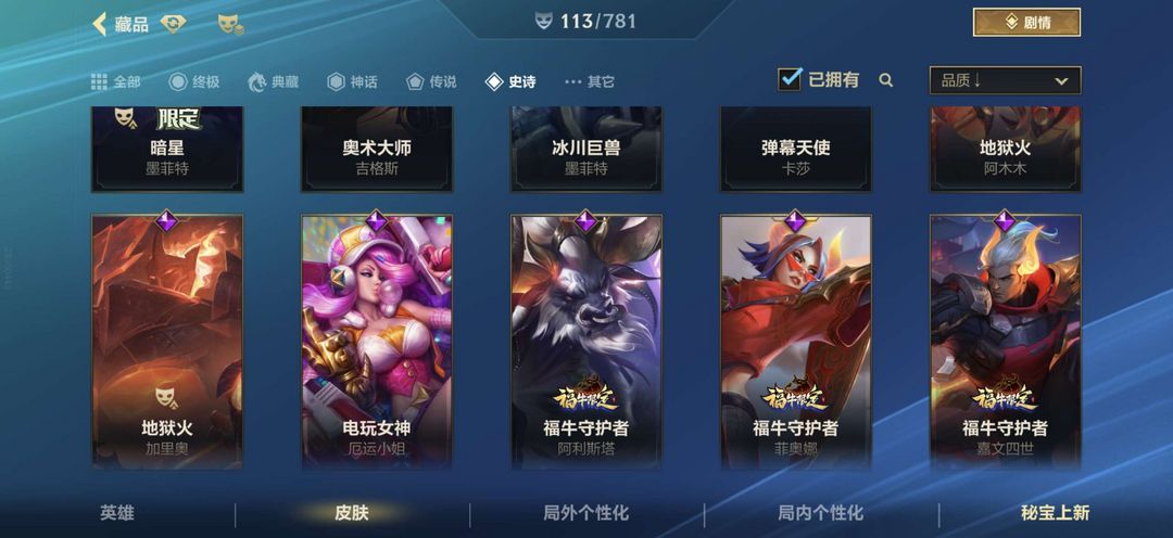 金克丝星夜流火光明哨兵等有很多可以玩除了选的那些一共113个皮肤