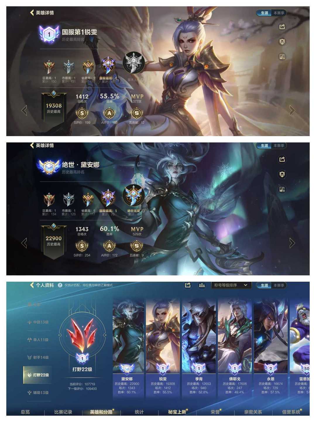 【魂】420皮四国一打野国一打野路✨国一皎月锐雯佛耶戈盲僧✨宗师段可排位✅峡谷前十金旗✅超武劫