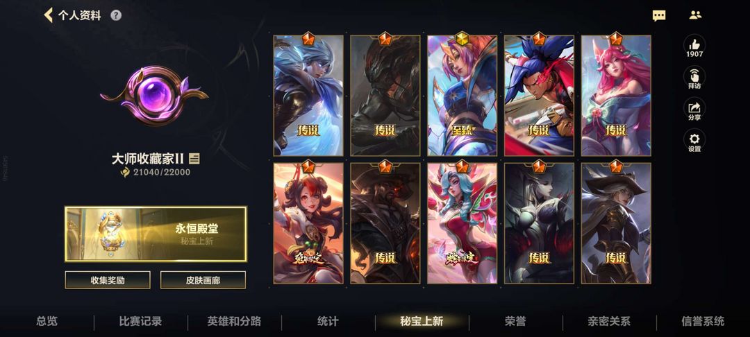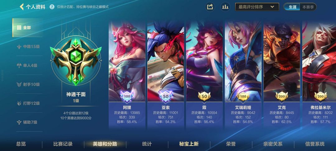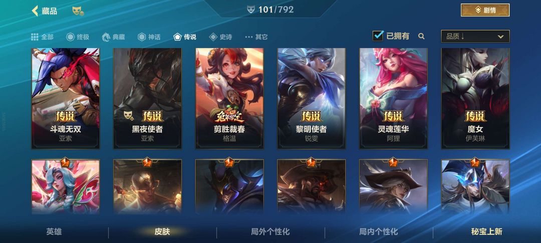 1神话14传说,至臻刀妹+年限隐藏炫彩,年限格温+斗魂,年限霞,玉剑男刀。