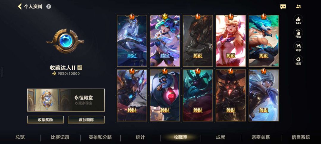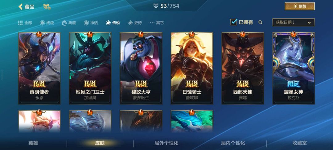 一共60个皮1个至宝1个限定皮肤11个传说皮