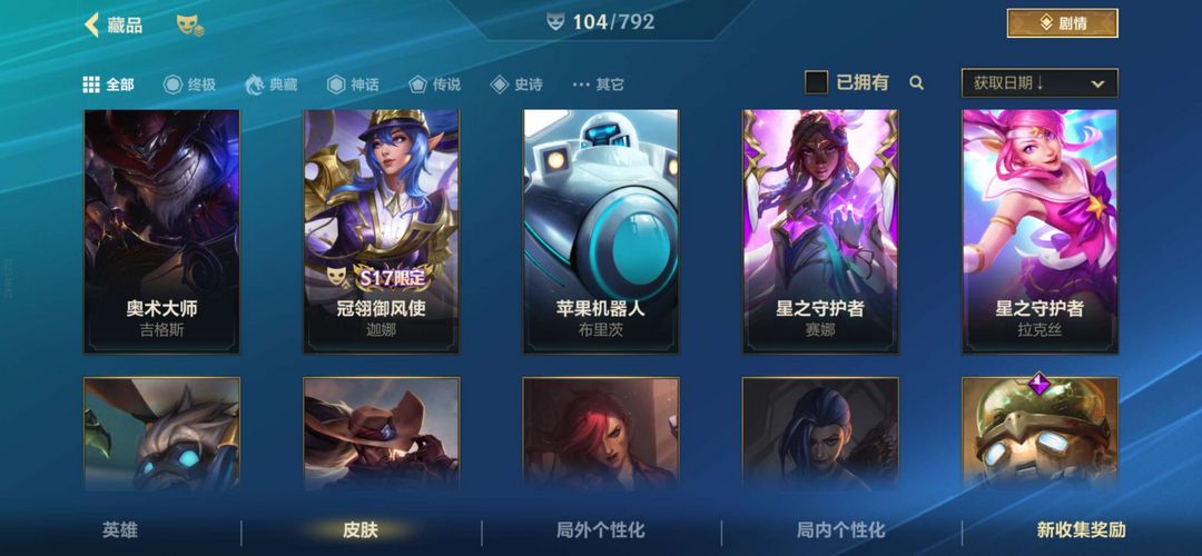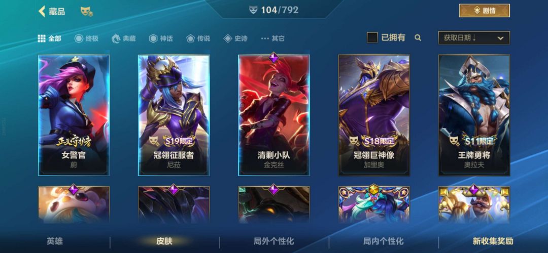 全英雄,104个皮肤,极品LOL手游账号出租!段位高手感好,随时可上号