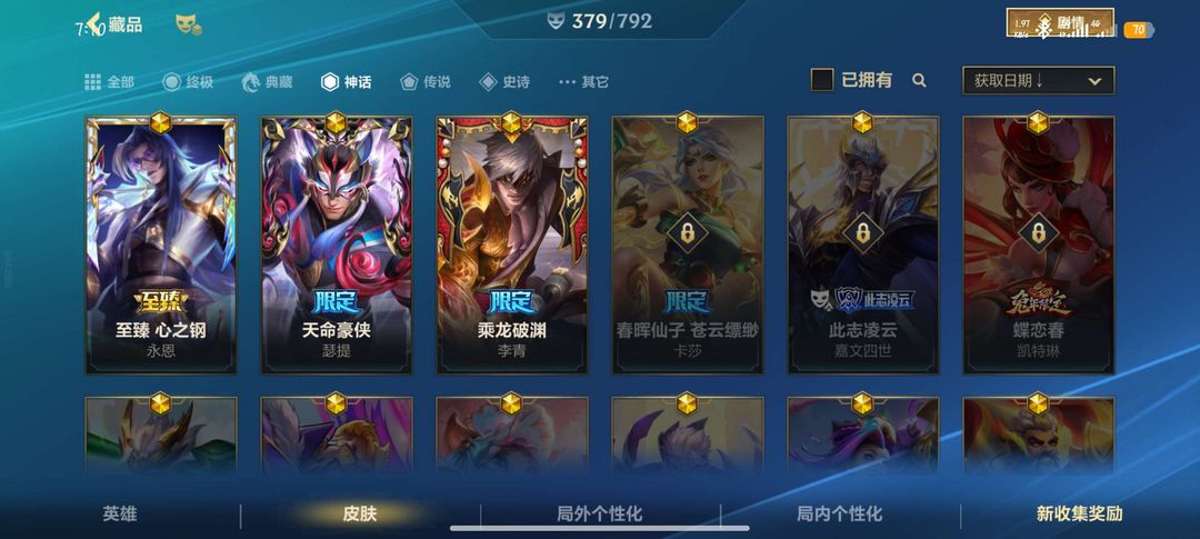 可以排位,段位钻一 ,全英雄,皮肤基本全有,四个赛季战令手册 ,适合打野的哥哥去carry