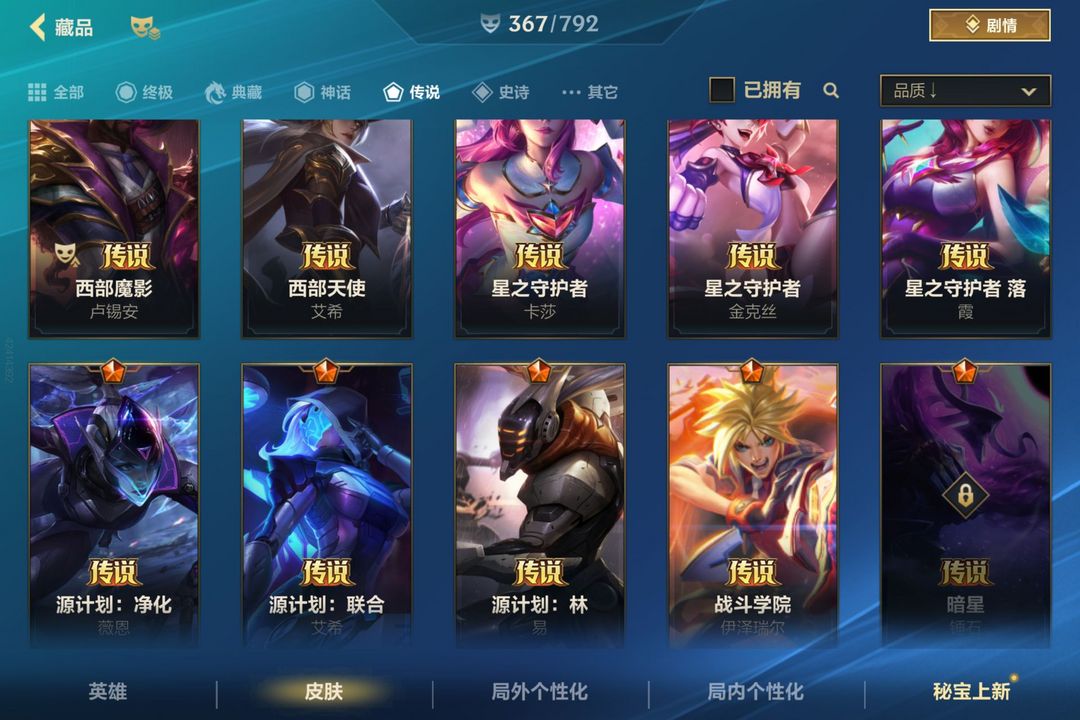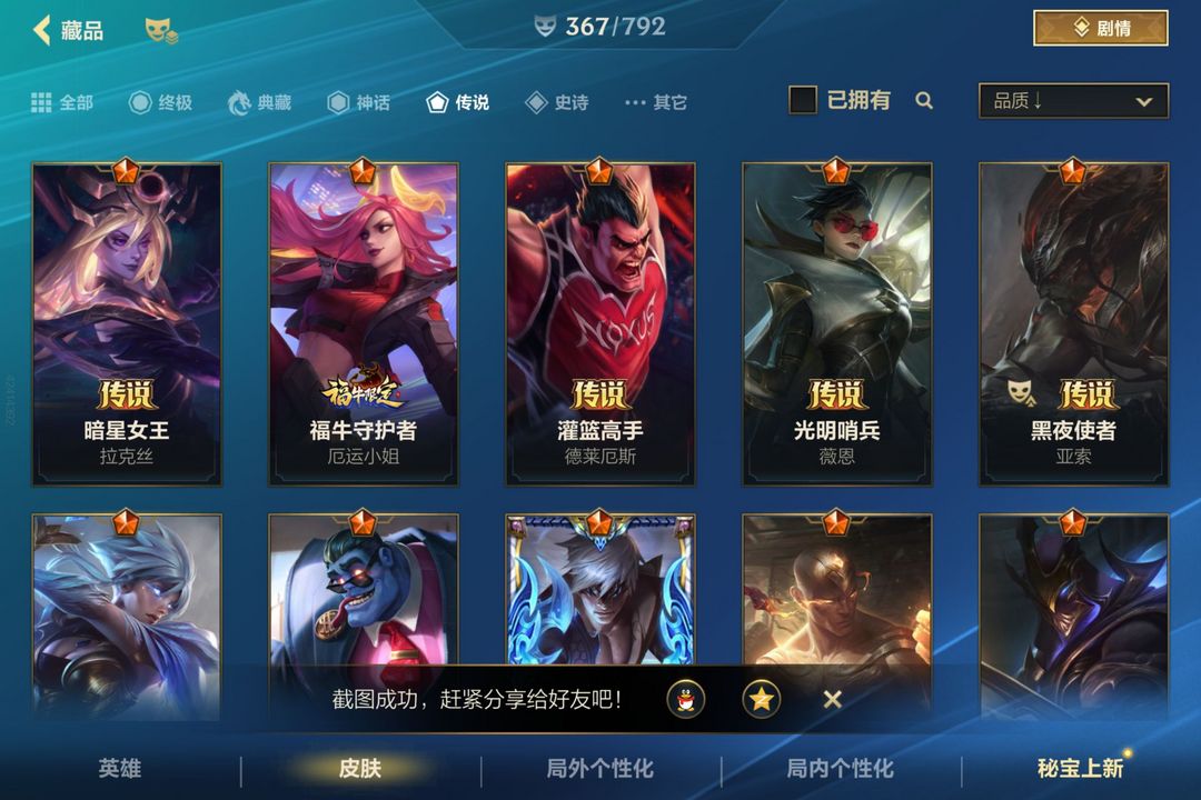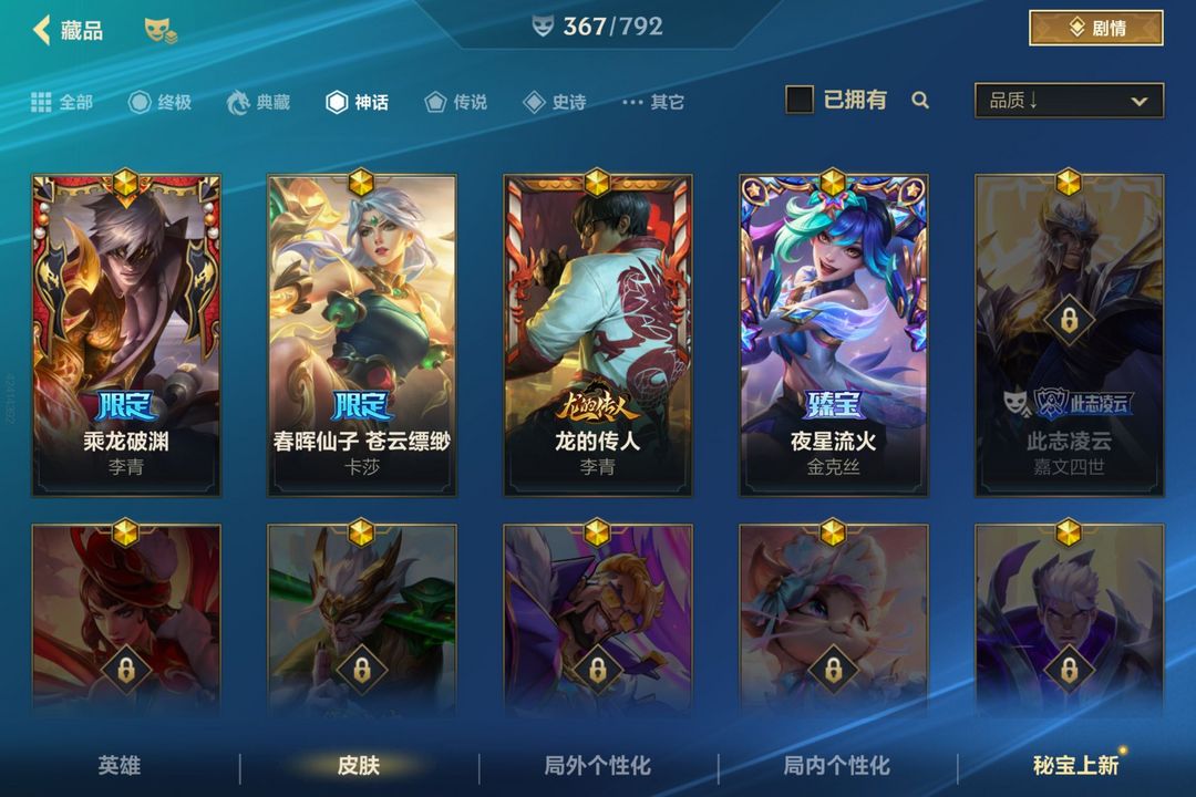 有龙虾 春晖仙子卡莎 和乘龙破渊的瞎子传说皮肤19个总皮肤367