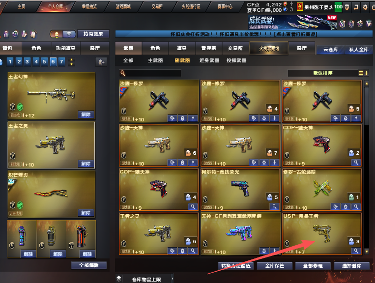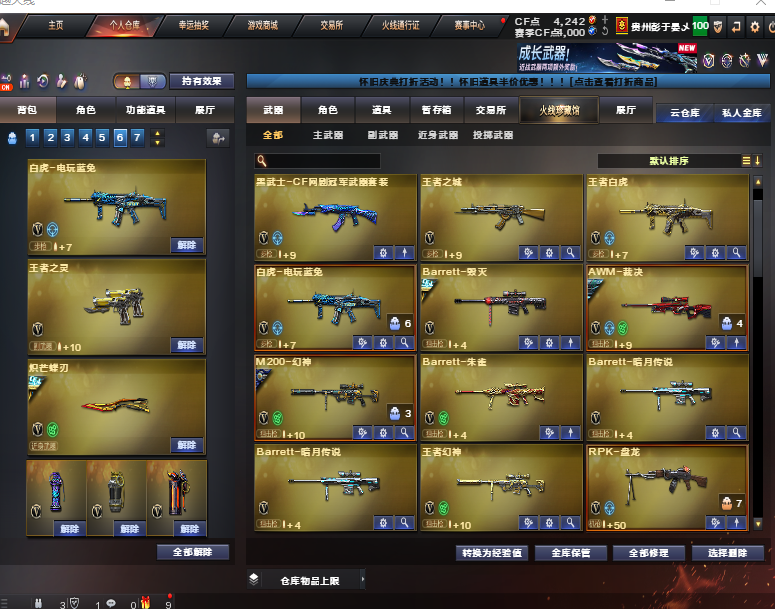 限制: 租号5次及以上 | 撤单率<45%才可租用此帐号装备描述:G36幻影音效KZ幻神音效炽芒蝶刃冠军炽王者雷暴USP芒冠军之薇白虎朱雀王者幻神9音效堕天神COP 云悠悠隼鹰