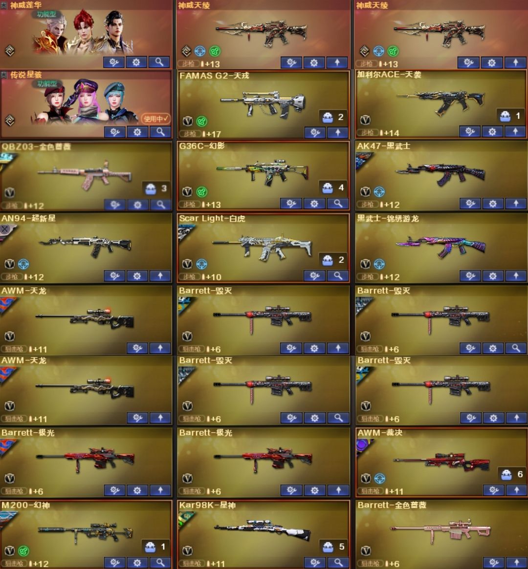 莲华天绫天袭天戎星骇幻影⭐幻神卡KZ星火5皮⭐裁决卡2皮星神卡3皮⭐白虎卡虎牙白鲨AG⭐QBZ卡冠薇