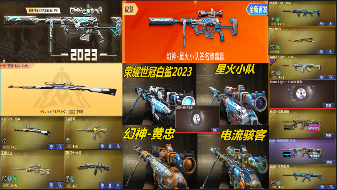 幻神4皮星火小队音效卡白鲨2023⭐炽芒蝶刃/98K星神/白虎巅峰皮⭐火麒麟②皮音效/②云龙COP