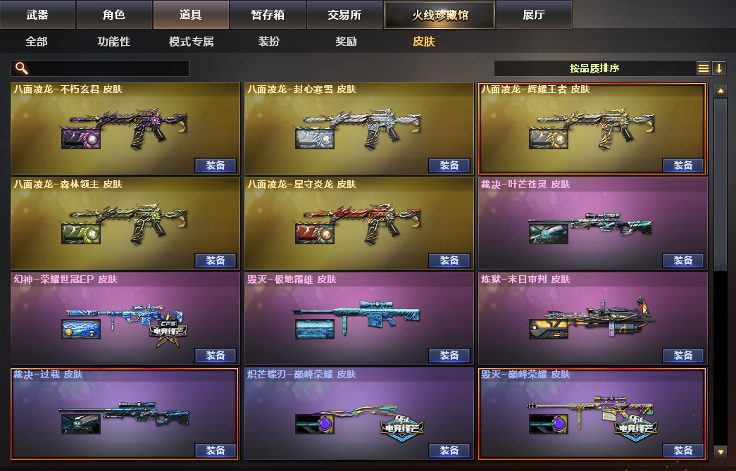 装备描述:生化:蓝色炼狱泡泡象+满配满皮肤八面玲珑+蝴蝶刀*3+mac龙宝+玄豹白虎套+传说圣域+4烈两把斯太尔小人枪+4盘炼狱 角色:4防传说星骇,4防隼 生化皮肤:终极猎手秦师+女圣泉+女机械 爆破:裁决皮肤音效卡+g36c+白虎+毁灭巅峰荣耀+ep柯尔特+2套雷暴王者手雷+6套玄豹雷 绿色游戏,开挂提取信息起诉。