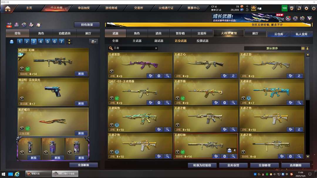 限制: 租号1次及以上 |装备描述:排位:可以、、【炽芒蝶刃+2皮巅峰荣耀】屠龙+5皮巅峰荣耀 毁灭+巅峰荣耀皮,雷神+巅峰荣耀皮 王者凌虎,生化全四防(变更背包、可以看僵尸血量):无需换弹。6烈6盘、炼狱、死亡之眼、MAC-涂鸦1、炽芒蝶刃+巅峰荣耀皮、生化雷、超级对讲机、全部弹匣、爆破四防:幻神2皮+音效(幻神-Heartshot皮肤、冠军之幻)、传说灵眸、传说幽瞳、M200-竞技荣光、王者幻神、、4个传说幽冥、柯尔特竞技荣光、QBZ191-银翼、、QBZ金色蔷薇、王者蔷薇、、、幻神音效、雷神音效、毁灭音效、玄武音效、火麒麟音效、黑骑士音效、 2套幻灵、2套竞技荣光、6套玄豹套装、、、生化四防 (集、王者潘多拉、玄豹)、爆破四防(云悠悠、晴雅、岚兮儿、王者雾萌萌、王者雨墨、暗夜审判)
