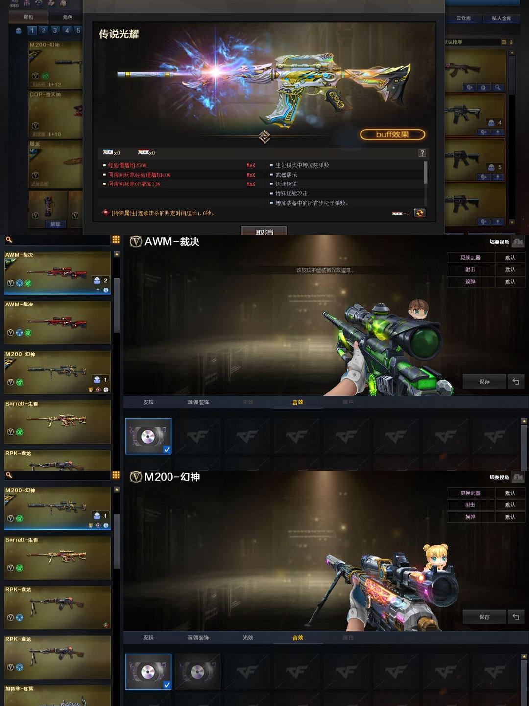 300V周瑜幻神音效卡+柯尔特USP✨裁决三件套✨传说光耀朱雀蔷薇✨堕天神7套✨6音效卡全赛事皮