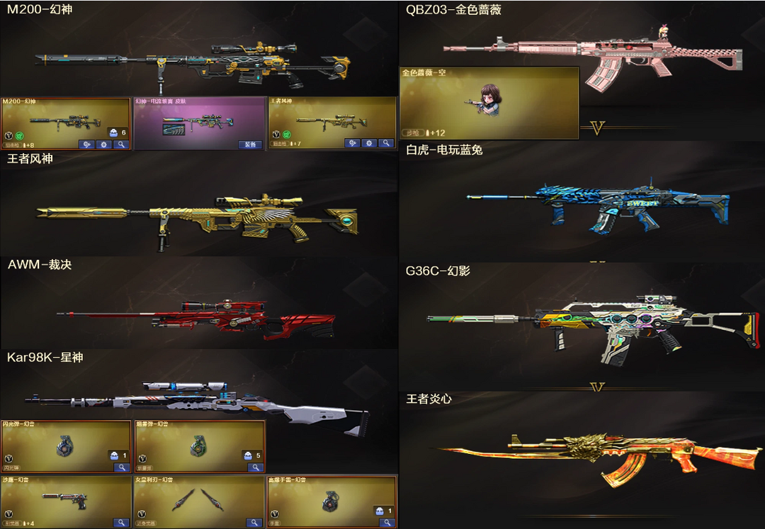爆破装❤幻神电流骇客风神+星神裁决❤QBZ蔷薇小人空+G36C幻影+白虎蓝兔❤1套幻兽雷+4防隼魅影