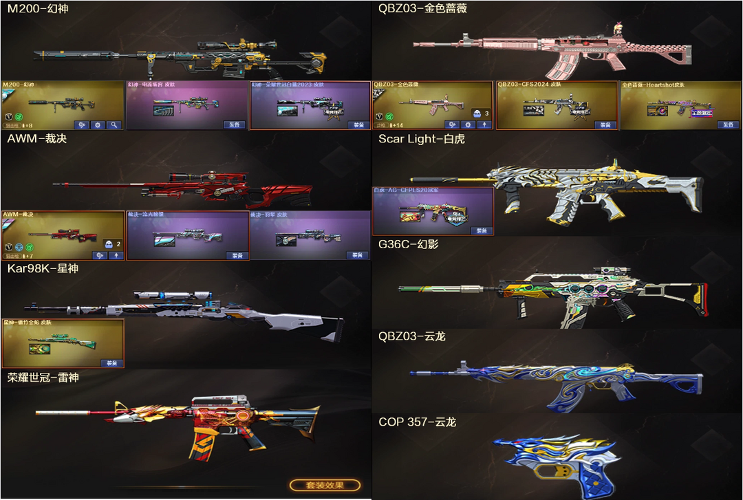 幻神白鲨电流+星神傲竹金蛇+裁决羽挚秘银❤QBZ女团2024皮+白虎AG+G36C幻影❤3防晴雅隼