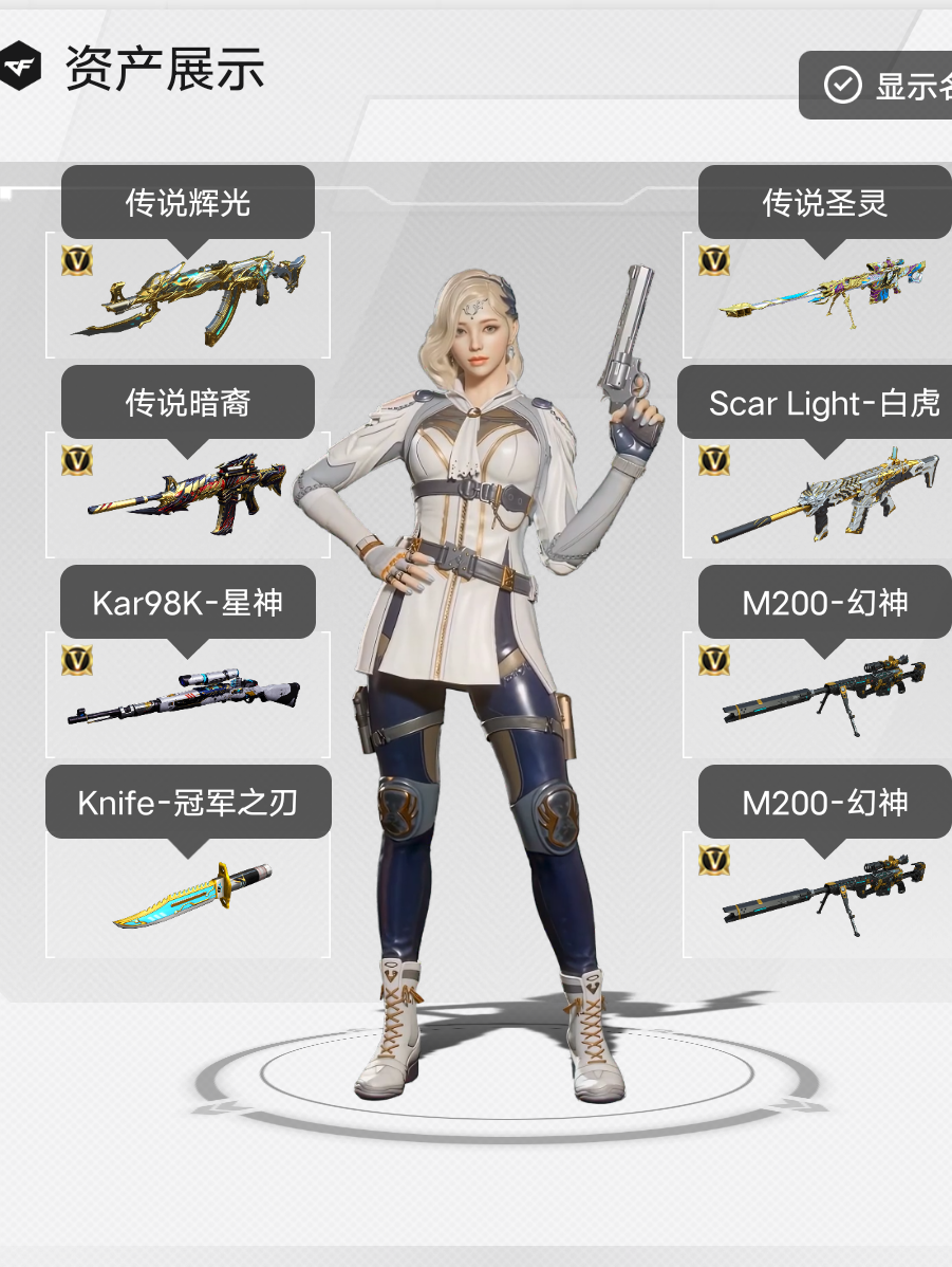 装备描述:传奇3段位❤️140V❤️3把幻神➕幻神音效卡(6皮➕降龙➕白鲨荣耀世➕cf200➕巅峰荣耀➕黄忠➕动感闪耀皮肤)❤️星神➕璀璨皮❤️2把觉醒版王者星神❤️白虎➕音效卡➕电玩粉兔皮肤❤️QBZ金色蔷薇➕音效卡➕白鲨荣耀世冠皮❤️(4传说❤️传说女帝❤️传说暗裔❤️传说辉光❤️传说圣灵)雷神杨戬➕战神超云➕冠军之魄➕荣耀之魄❤️毁灭➕AG冠军➕战神张飞➕冠军之怒➕荣耀之怒❤️火麒麟➕战神关羽➕冠军之心➕轻羽➕华夏之❤️黑骑士➕少林➕战神马超➕2021皮❤️裁决➕星际旅游皮肤❤️屠龙荣耀❤️火麒麟千变黑龙雷神❤️黑骑士死神黑武士❤️天启超新星❤️武圣套装❤️机械迷城❤️龙血青龙❤️3白虎❤️玄武❤️玫瑰精灵❤️烈火王者之圣❤️王者之烈王者白虎王者霜心王者龙血❤️白虎电玩蓝兔白虎之魄❤️天龙毁灭激光裁决朱雀大炮❤️2盘龙2炼狱❤️满配副武器(5修➕1天神➕2把冠军之特➕2把冠军之刃➕一把USP神工天巧➕电竞装甲)屠龙擎天麒麟刺❤️王者玉锋❤️英雄手雷套❤️白虎迷你小爱❤️M4玄龙❤️雷神枪娘蕾安娜❤️武圣赤魂武圣青龙❤️炼狱迷你小刚❤️王者手雷套装❤️雨裳❤️葵瞳❤️王者貂蝉❤️王者沙漠玫瑰