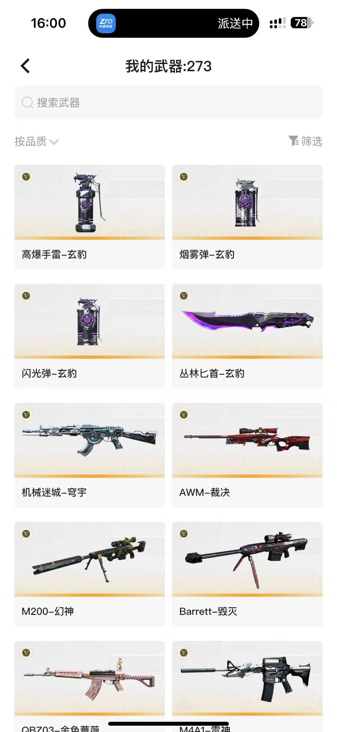 装备描述:AWM-裁决;M4A1-雷神,有音效卡,雷神QBZ蔷薇有皮肤。