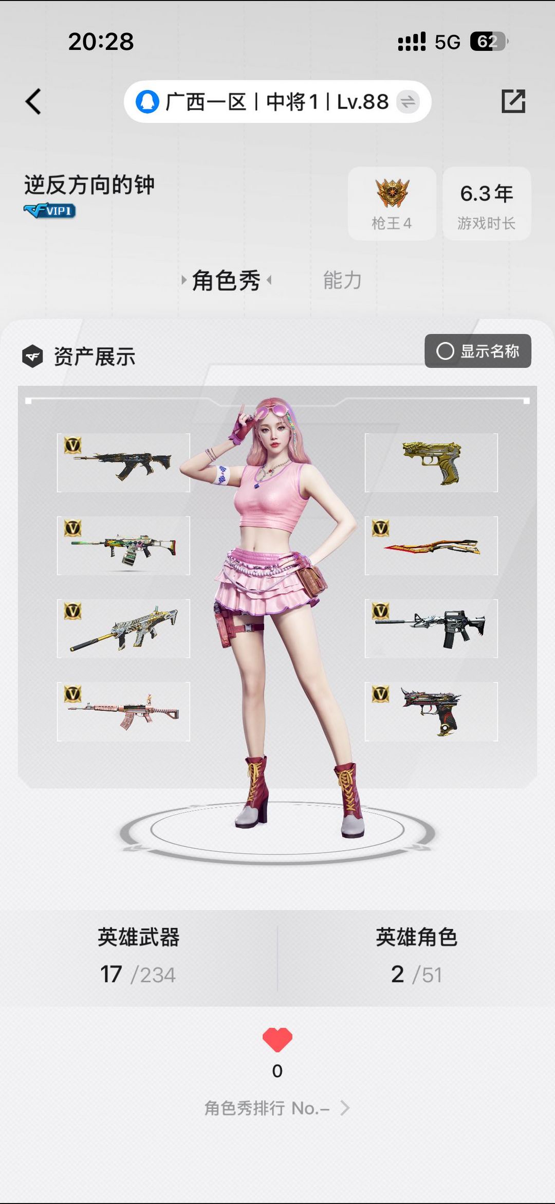 CF租号南部广西一区|白虎+雷暴王者全套|QBZ03冠军虎鱼|四防角色+全套冠军皮|爆破满配号突破手