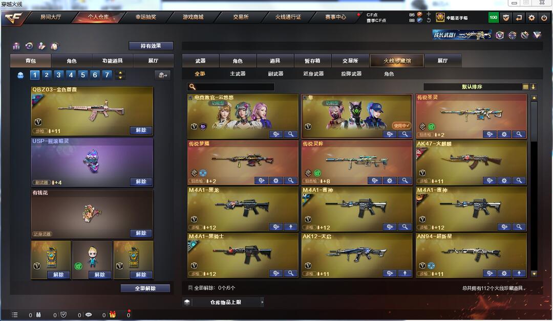 装备描述:传说灵眸梦魔圣灵星火宠儿N9荣耀六皮肤幻神音效卡宙斯套蝶刃6烈蝴蝶QBZ幻影白虎裁决满皮肤满COP挑战满套装