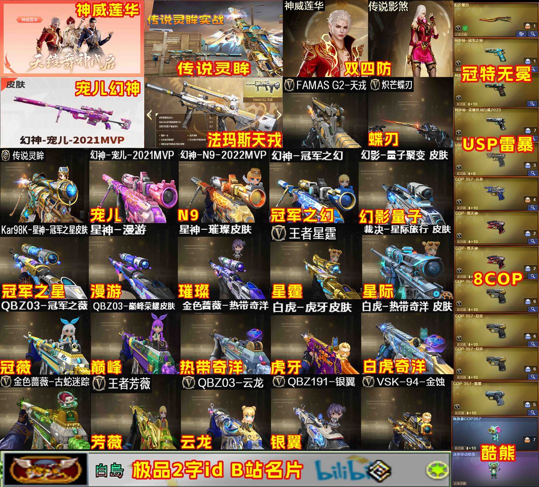 限制: 租号8次及以上 | 撤单率<50%才可租用此帐号装备描述:【装备道具】:传说影煞、神威莲华、传说灵眸、传说破晓★幻神-宠儿-2021MVP、幻神-冠军之幻、M200-幻神-N9-2022MVP/星神-璀璨、星神-漫游、Kar98K-星神-冠军之星/白虎-虎牙/幻影-量子聚变/QBZ03-冠军之薇、QBZ03-巅峰荣耀、金色蔷薇-热带奇洋白虎/雷神-R.LGD-CFPLS18冠军、雷神-荣耀之魄、雷神-HeartShot/★FAMASG2-天戎、炼狱-百战金芒、VSK-94-金蚀、G36C-幻影、Scar-白虎、QBZ191-银翼游侠、QBZ03-金色蔷薇、QBZ03-云龙、王者星霆、青龙之魄、王者芳薇★晴雅、华、司雨、机械姬、雨墨、关小雨、鹰、影豹、迷迭香、炫★COP357-雷霆、COP357-幻灵、COP-堕天神、COP357-云龙、USP-雷暴、柯尔特-冠军之特、白鲨柯尔特-无冕之王★斯泰尔-蝴蝶、MK5-炽火炎龙、悦蓝-惊涛骇浪炼狱-迷你小钢、雷暴套装、堕天神套装、云龙套装★泡泡象COP357、5烈龙/炼狱-百战金芒音效卡、屠龙音效卡、黑龙音效卡、幻神音效卡、星神音效卡、毁灭音效卡、裁决音效卡、