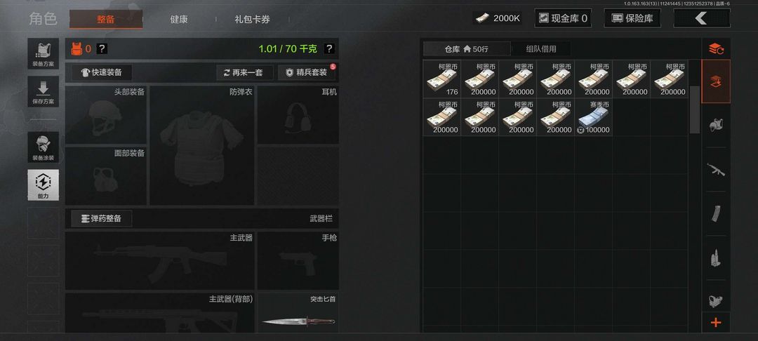 装备描述:仓库总价200万纯柯恩币,还有全装包