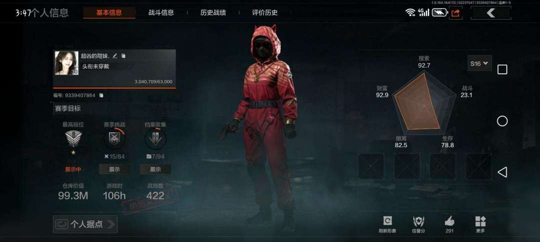 装备描述:总资产99.3m 7890万纯币