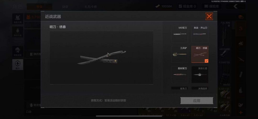 无资产✘无资产!!✘明刀绣春✘胜利军刀✘刀皮号✘两款限定刀皮✘介意无资产的不要租!