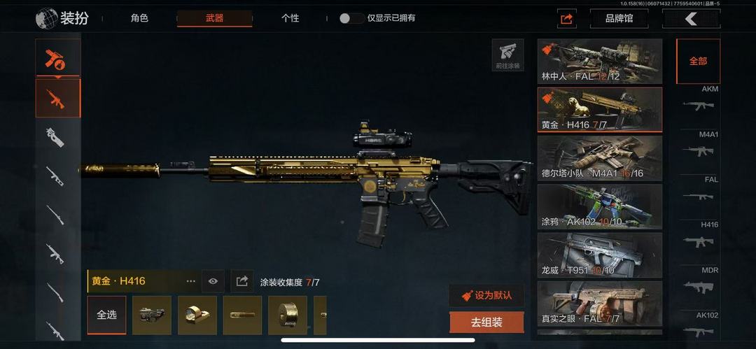装备描述:30级,历史最高段位:暗区传说【近战武器】:涂鸦利刃,突击匕首,工兵铲【角色皮肤】:战士甲胄,林中人特遣作战服,森林守望特种服,苏梅克制式服,林地作战服,黑金作战服,九号特遣,边境看守,荒漠蝰蛇,白狼连队作战服,街区守卫,特遣小队;【突击步枪】:火力倾泻AKM,黑金国际M4A1,德尔塔小队M4A1,林中人FAL,真实之眼FAL,秋宴FAL,黄金H416,涂鸦AK102,龙影AKS74U,白狼连队AKS74U,炎夏浪花AR57,棱光裂变ACE31,龙威T951,森林迷彩T951,深水浴池T03,沙漠数码T03,森林迷彩T03,火绒AK12;【冲锋枪】:火力倾泻MP5,涂鸦MPX,苏梅克UMP45,多边棱彩MAC10,神锋Vector45,多边棱彩Vector45,沙色Vector45,竞技Vector9,都市黄Vector9,龙影Suomi;【射手步枪】:白狼连队VSS,黑金国际M110,绿松石数码QBU1914;【栓动步枪】:沙漠作战AX50,历战AR30;【轻机枪】:多边棱彩M249;【霰弹枪】:多边棱彩M870,真实之眼SPR310,火漆DP12;【卡宾枪】:多边棱彩M96,敬伙伴