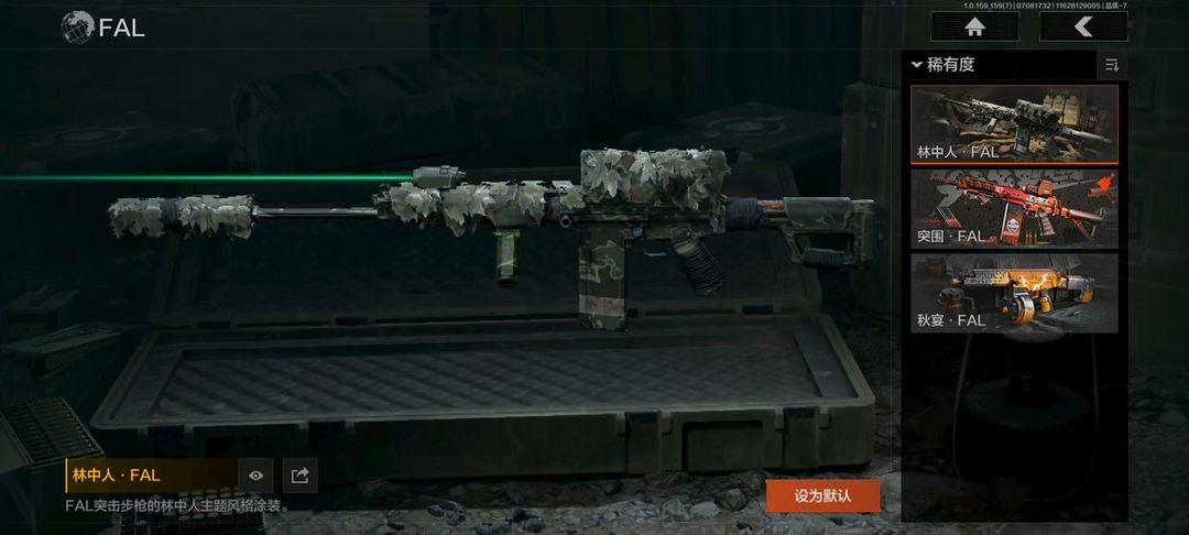 装备描述:30级,历史最高段位:暗区传说【近战武器】:赢家匕首,寒牙手刺,精英指虎,瑞兔折刀,突击匕首,工兵铲;【手套】:急袭手套;【角色皮肤】:战术甲胄,绅士西服,黑金指挥官作战服,黑金作战服,九号特遣,荒漠蝰蛇,白狼连队作战服,街区守卫,特遣小队;【突击步枪】:战术大师M4A1,林中人FAL,突围FAL,秋宴FAL,竞技MDR,北国内卫MDR,山地伪装AK74N,骑士之剑AKS74U,火绒AKS74U,龙影AKS74U,火绒草AUG,战术大师AUG,赢家F2000,雪山之王F2000,炎夏浪花AR57,电动工具AR57,骑士之剑ACE31,旗帜AEK,北国内卫AN94,绿松石数码Groza,异彩合金SCAR,四色花SCAR,龙威T951,森林迷彩T951,绿松石数码T951,林地数码T03,沙漠数码T03,森林迷彩T03,北国内卫AK12;【冲锋枪】:火力倾泻MP5,空勤特遣MP5,雪山之王MPX,涂鸦MPX,兔年春季限定,滑雪季UMP45,北国内卫MAC10,危险地带M3A1,沙色Vector45,多边棱彩Vector45,北国内卫Vector45,绿松石数码T85,山地伪装Vector9
