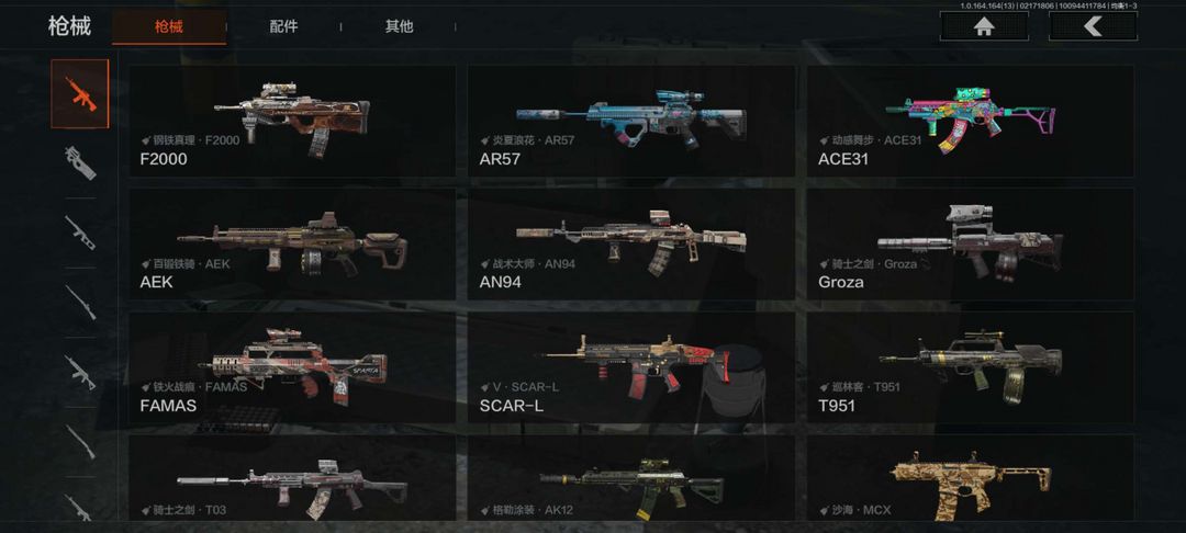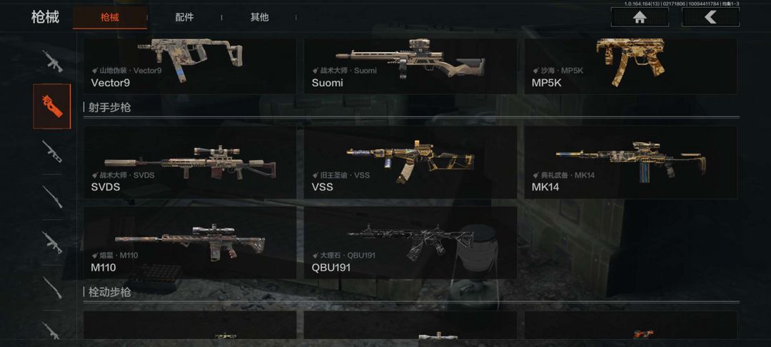 有五六把枪金皮和一把年限刀皮,有30多m,请板板随意花,感谢