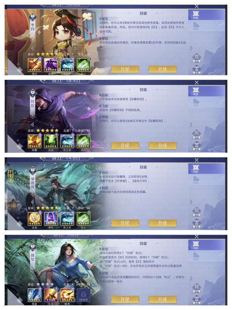 骠骑芈月 舌战小偷 净坛诸葛 四星越女 三星廉颇黄帝太后徐晃 兰陵王商鸡都毕业 超多皮肤