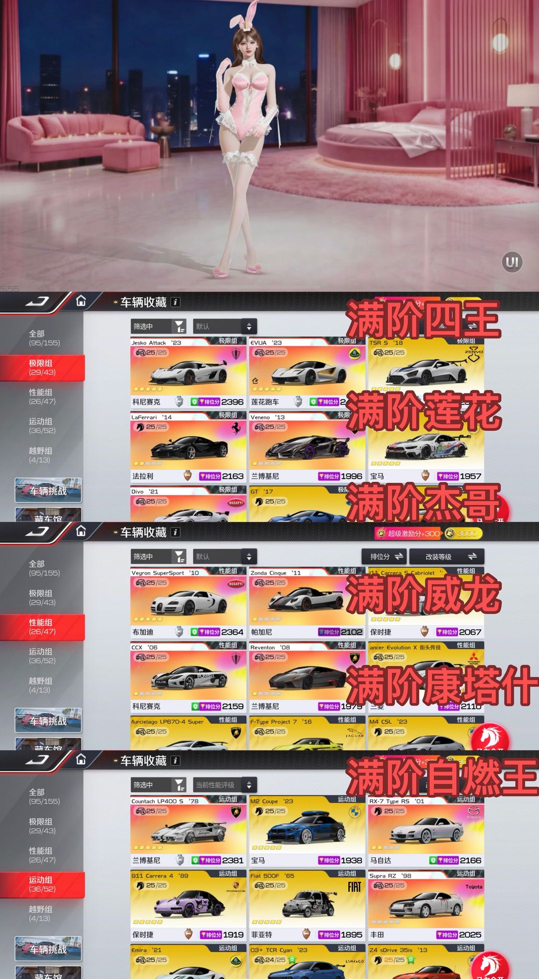 周年庆四王全珍藏✨满阶满改电莲花/杰哥/满阶自燃王✨满阶威龙/满阶康塔什✨菲菲之夜时装