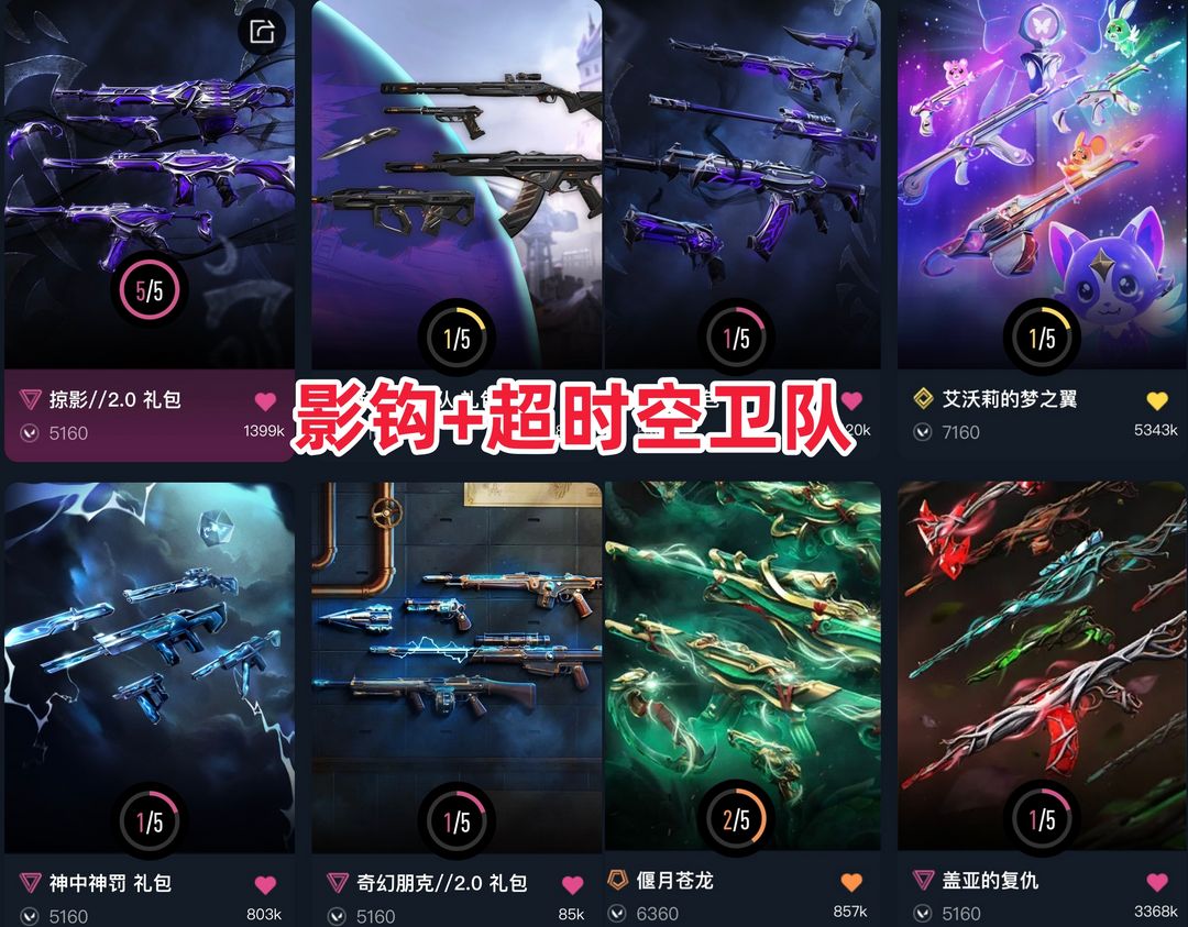 可排★影钩掠夺爪刀紫金爪刀★掠夺2.0套装★苍龙冥狙★超时空卫队梦之翼猫猫光明哨兵狮子盖亚狂徒★神罚