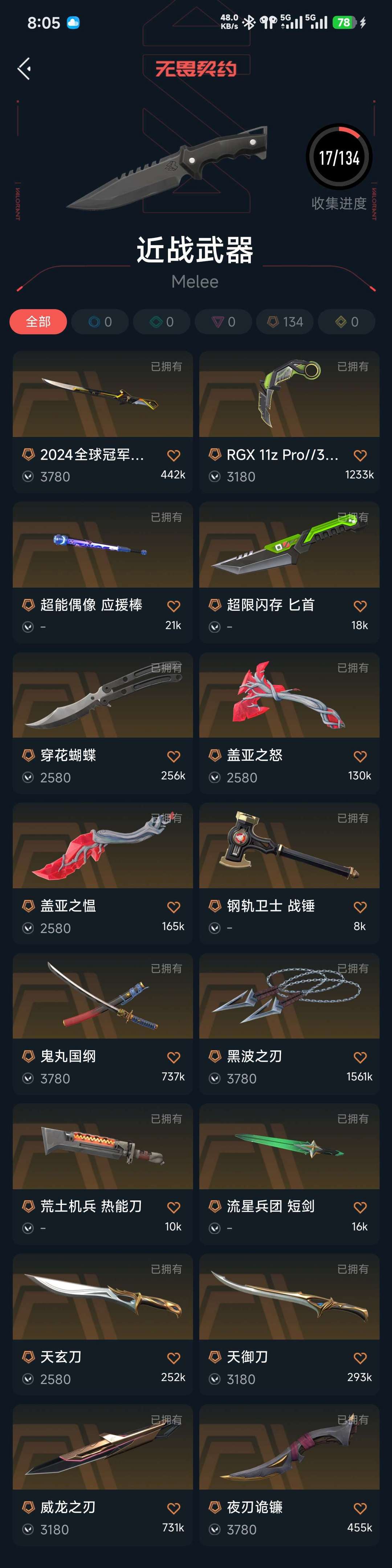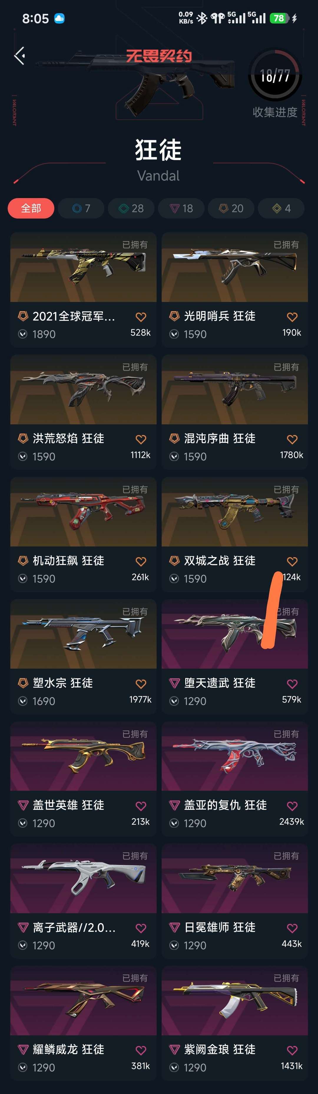 武器皮肤数量:128