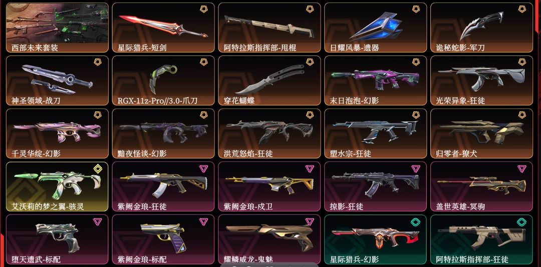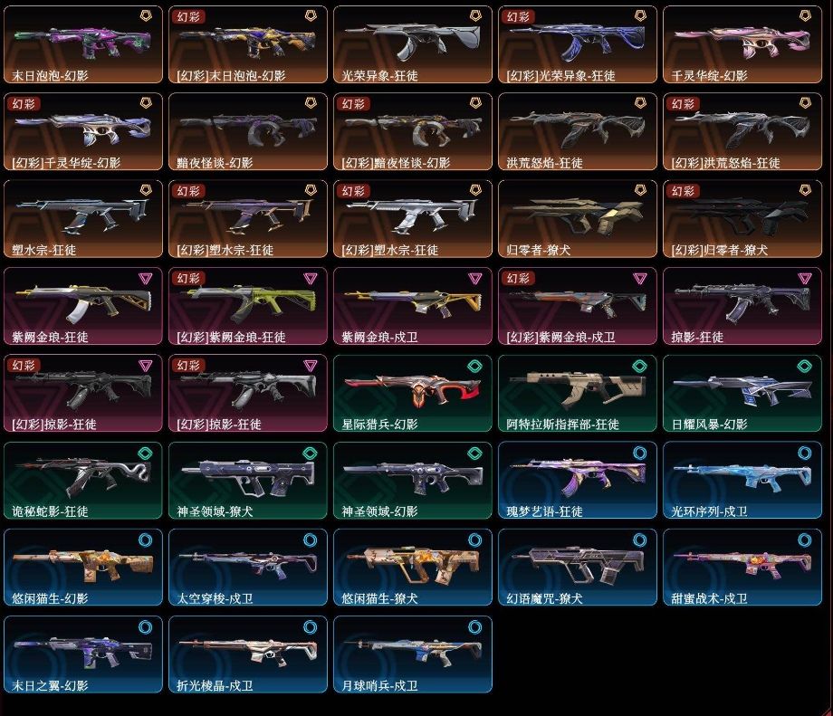 装备描述:可排位✨西部套装✨显卡爪/穿花蝴蝶✨异象/流脓/塑水/紫金/掠影狂徒✨末日泡泡/莲花/暗夜/幻影✨紫金戍卫/归零獠犬✨盖世大狙/艾沃莉骇灵✨威龙鬼魅/堕天/紫金标配✨