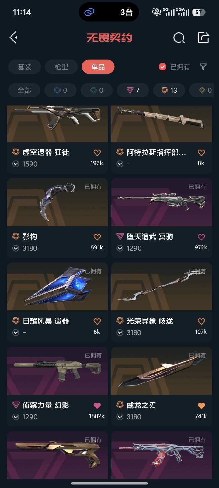 武器皮肤数量:72