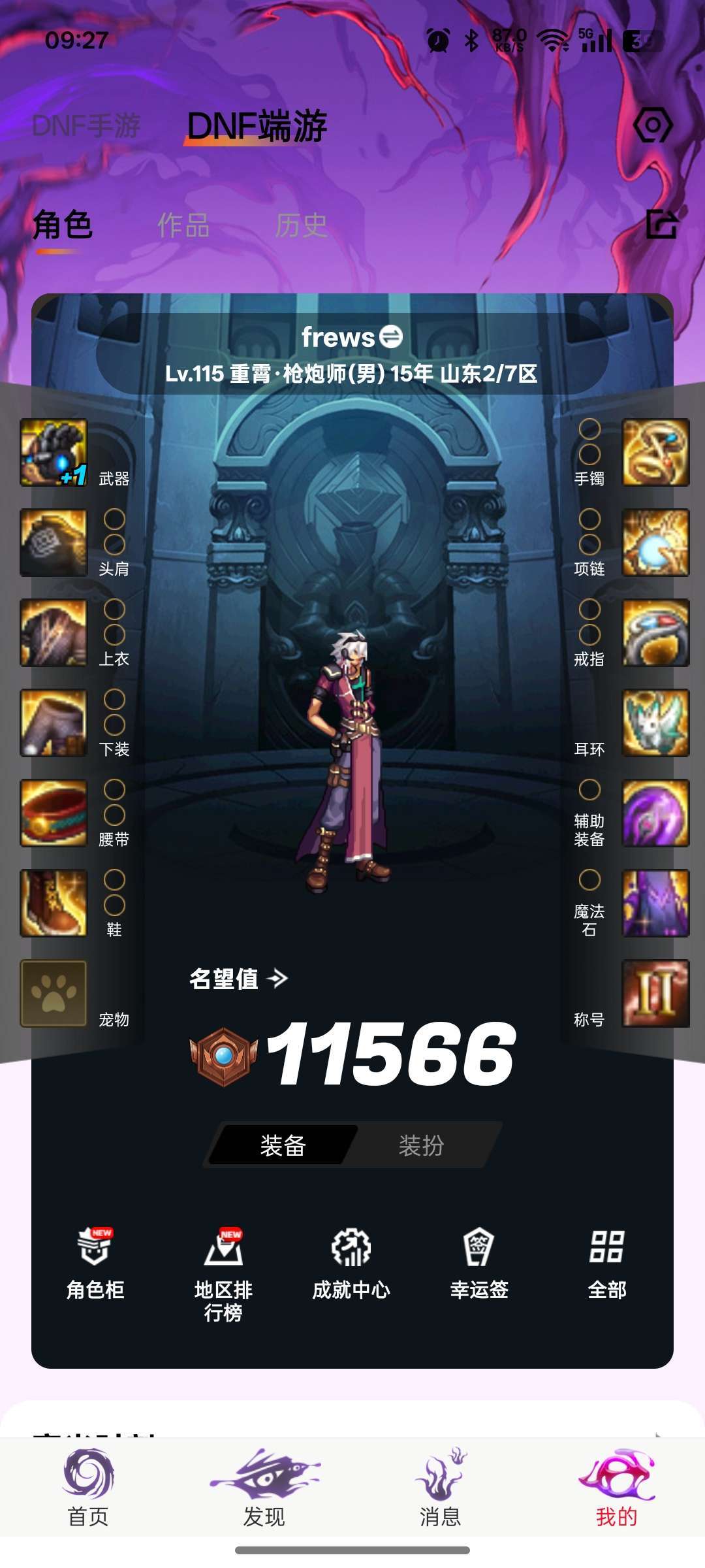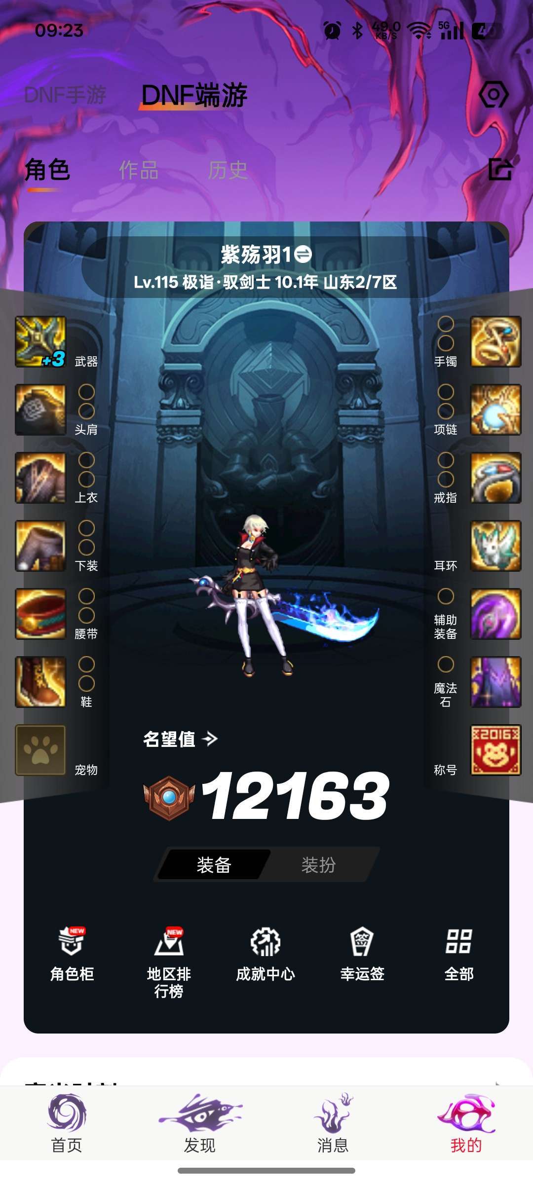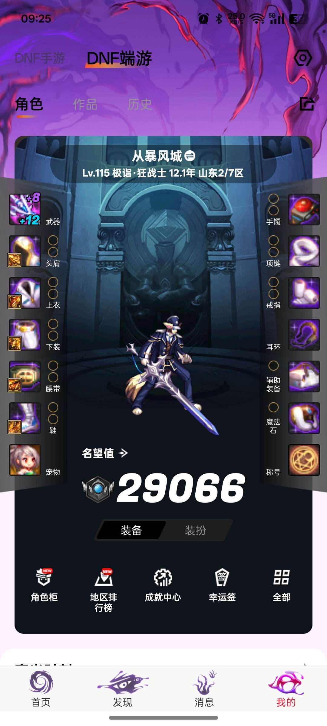 游戏区服:地下城与勇士-跨六-山东2/7区