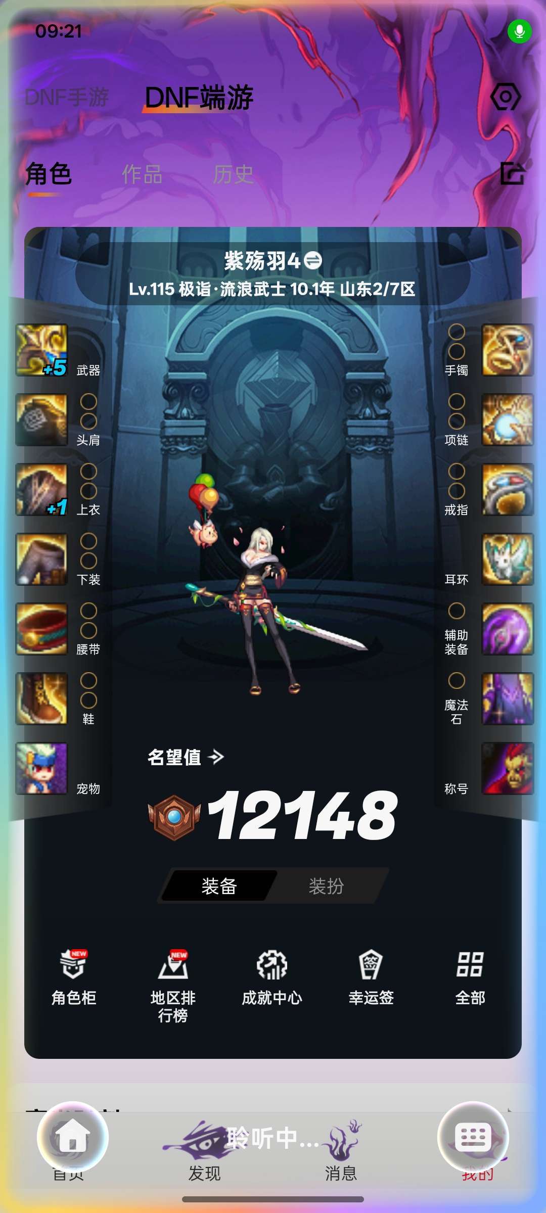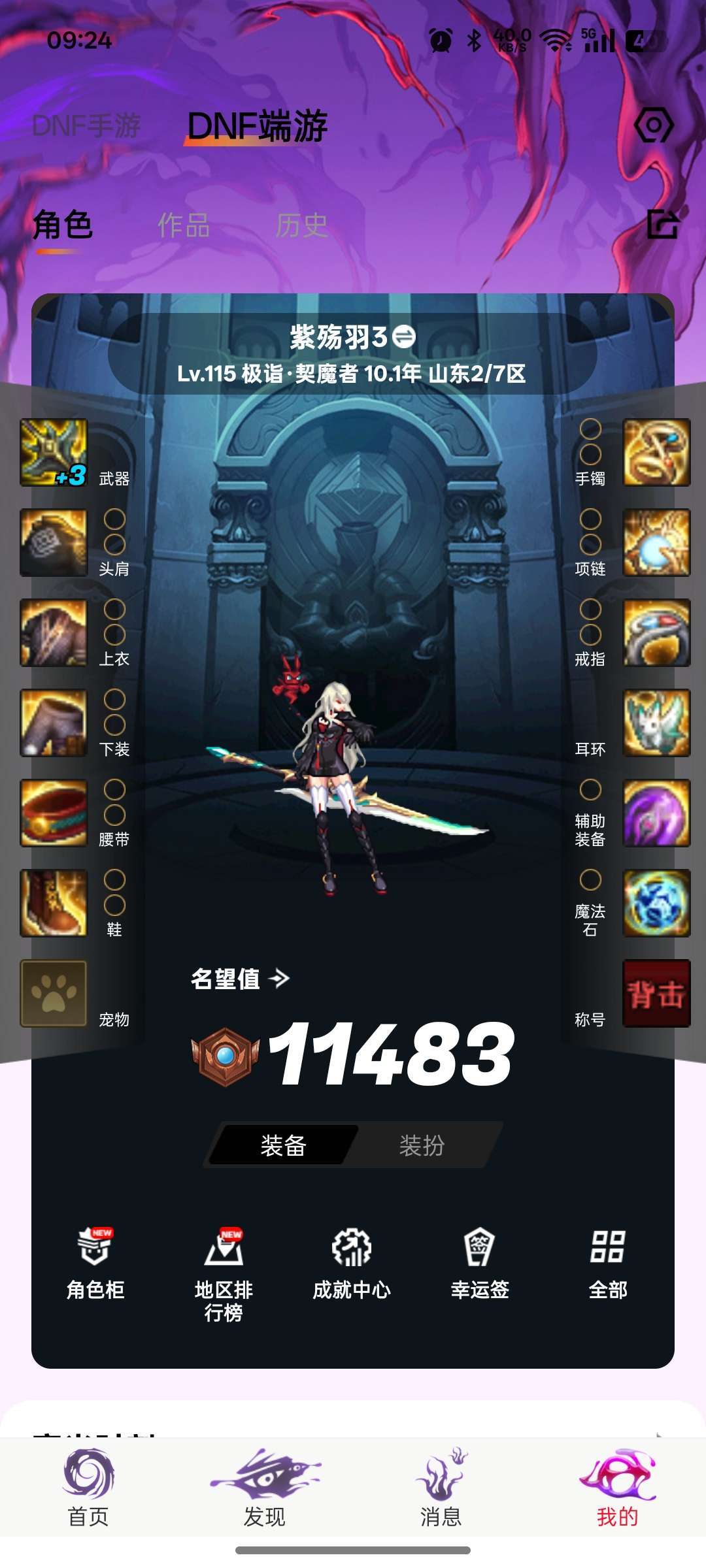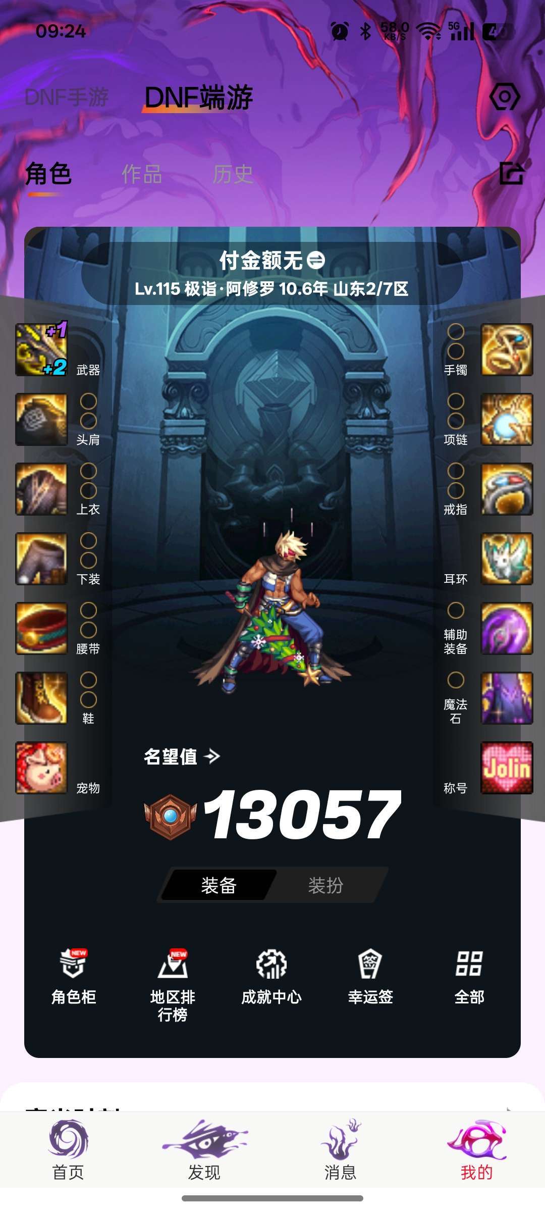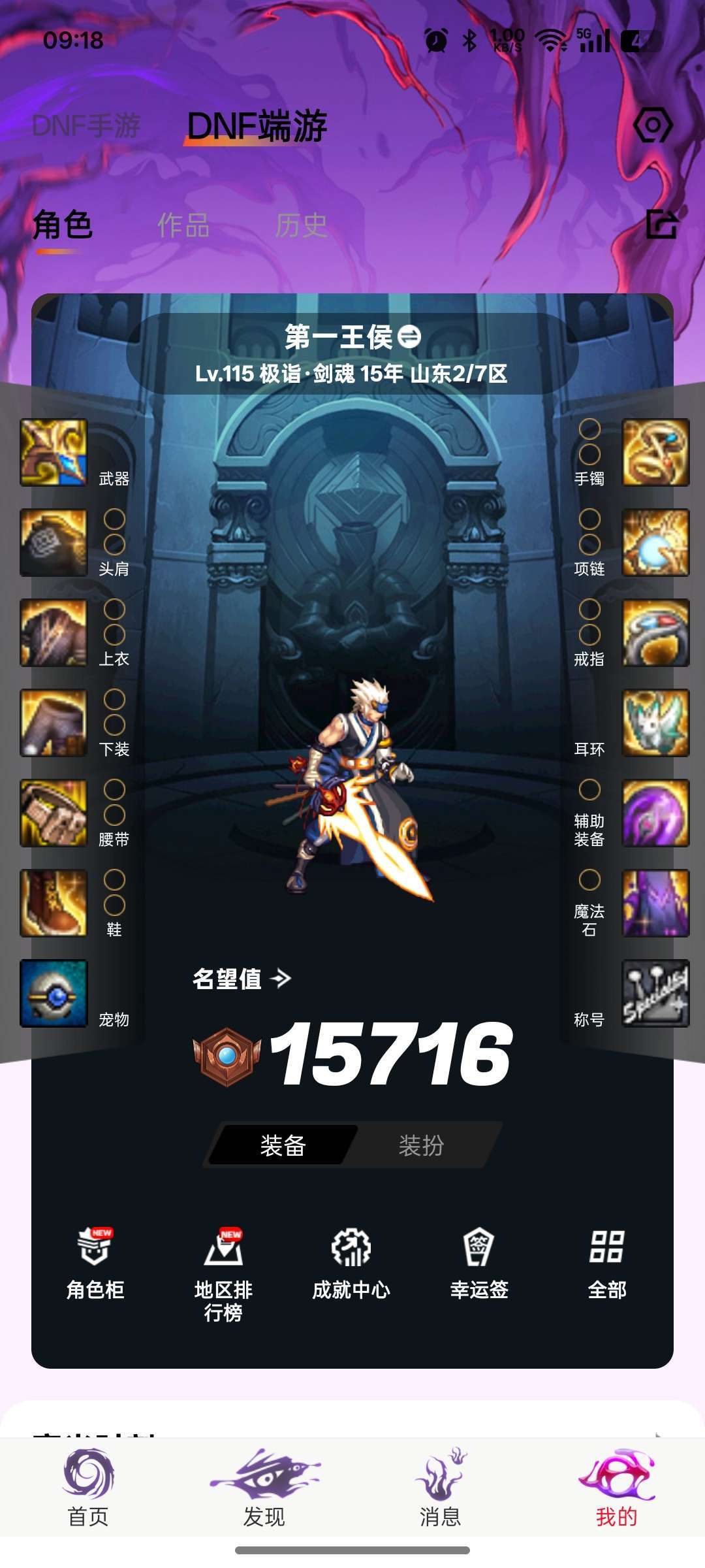 游戏区服:地下城与勇士-跨六-山东2/7区
