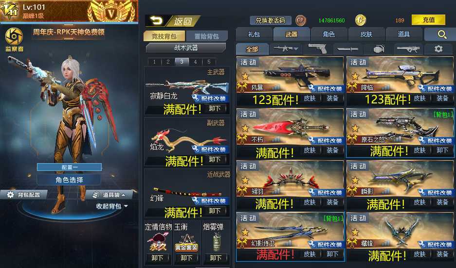 v11全满配件AWM湮灭!针锋战神•改叁!满幻影侍卫!冥蛇疾风体!广陵贰!无限ex!血魔!满螳螂臂!